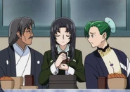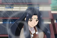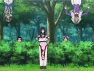 Funaho Masaki Jurai faces Kenshi with a chain attack, but instead of using a chain, she drives him back with a series of combo strikes and hurls him into the air multiple times without ever letting him touch the ground, only using a length of thread. Upon seeing this, Fuku begs Funaho to also her throw her into the air using the same technique.