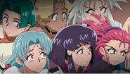 All of the conversations up to this point conclude in the reveal that they have all gathered not only to train Kenshi, but to hear Tenchi announce his intent to marry Ryoko, Ayeka, Sasami, Ryo-Ohki, Washu, Mihoshi, and Noike.