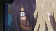 Jovia, who doesn't have anything to do, is kicked out of the bridge by Tsukiko and forced into a subspace room with all of her otaku stuff. However, she gets scared by a woman's voice cackling in the background, believing it to be a prank set up by the "lady that strangely has a presence despite having a plain face and flat body", and freaks out upon getting a jump scare of this woman's face coming out of a TV screen. She runs back to the bridge to claim she saw a ghost, but Kuis is unimpressed by Jovia's description, realizing she's talking about her specifically; Jovia claims that since Kuis is so similar to the "old hag" [Seto] that surely many people hate her, but going into her room to scare her is taking it too far.