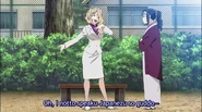 Naturally, people were staring at this strange foreigner who was doing whatever she wanted. As Jovia sat in a park, she felt like she recognized some of the people looking at her. A passing car abruptly reversed upon seeing Jovia and out came a woman dressed in a yukata that Jovia realized was her old friend Mirei, who had come out upon hearing that there was a suspicious person around. Jovia pretended to be a foreigner who couldn't speak Japanese well, but Mirei wasn't fooled and punched Jovia in the stomach, then dragged her into her car. To Mirei, everything the people in town told her (who Jovia realized were her old schoolmates) pointed to the impossible truth, this strange person was her old friend, returned in a new body.