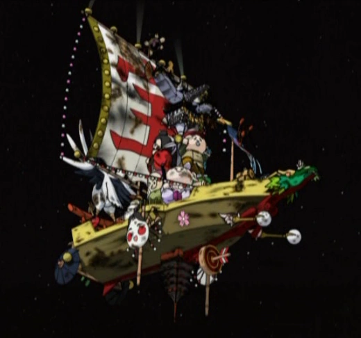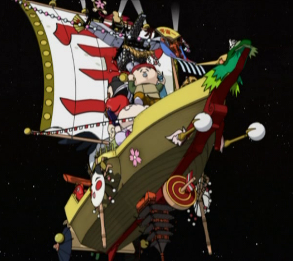 Featured in Tenchi Muyo! GXP, the Unko (運呼, うんこ) was the flagship of the Good Luck Fleet, created by The Daluma Pirate Guild, captained by Seiryo Tennan.